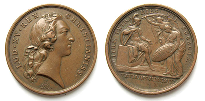 Ich möchte diesen Thread mal wieder ein wenig beleben und eine weitere Medaille aus der Suite um Louis XV. vorstellen:
