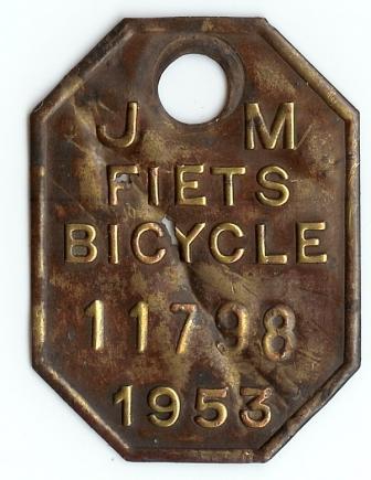 Das Blech wurde unterm Sattel angeschraubt. Für SWA/Namibia ist diese Steuer abgeschafft, ich vermute auch in Südafrika. So wie keinem Schwarzen einfallen würde, für einen Hund Steuer zu bezahlen, würde er das auch nicht (mehr) für ein Fahrrad tun. Geht auch gar nicht mehr, jegliche Meldepflicht, d.h. Einwohnermeldeämter sind abgeschafft.
