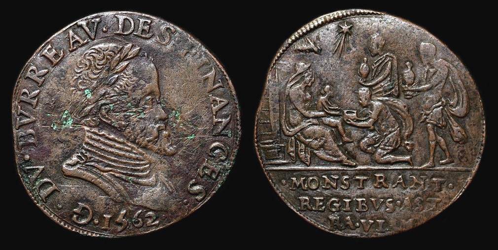 Ich möchte hier mal ein paar Rechenpfennige aus den Niederlanden vorstellen, die hinsichtlich ihrer Gestaltung und Thematik in die Blütezeit dieser Geldzeichen fallen. Sie stehen mitten im 80-jährigen Krieg (1568 bis 1648), der zwischen der spanischen Krone und der Republik der sieben Provinzen der Vereinigten Niederlande ausgetragen wurde. Die Einleitung mit einer Medaille ist dabei viellecht etwas merkwürdig, aber ich finde, sie paßt ganz gut in den Kontext. Es handelt sich um ein imposantes, sehr seltenes Stück, und mir wäre es viel zu teuer gewesen. Aber weil die Landkarte einen Bereich zeigt, an dessen Peripherie ich mich häufig bewege, fand ich es interessant und durfte es vor ein paar Jahren bei einem freundlichen Händler fotografieren.