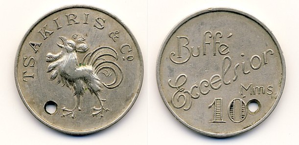 das hier abgebildete Stück gibt mir einige Rästel auf. Die Herkunft Ägypten erscheint mir wahrscheinlich, weil einerseits der Name Tsakris in Ägypten häufig auftaucht und das Nominal "10Mms." - vermutlich Milliemes - auch darauf hindeutet. Die Person, von der ich den Token bekommen habe, besteht steif und fest auf Kairo. Ich bin mir auch ziemlich sicher, daß ich den Token schonmal irgendwo im Zusammenhang mit Ägypten gesehen habe. Aber wo??? Vielleicht kann mir an dieser Stelle jemand von Euch auf die Sprünge helfen. Eine Bestätigung zu Ägypten und noch mehr eine Referenz oder einen Hinweis zur Verwendungszeit wären hoch willkommen.