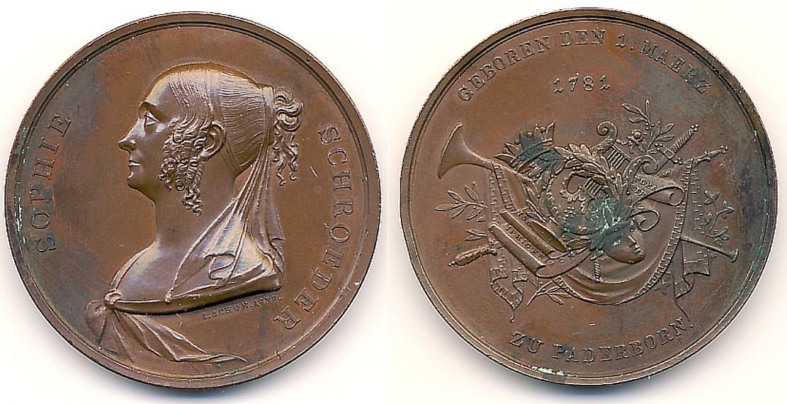 Die gebürtige Paderbornerin Sophie Schröder (1781 – 1868) war eine zur damaligen Zeit berühmte Schauspielerin und ist bis in Jetztzeit nicht vergessen worden. Zumindest die Deutsche Bundespost hat ihr Andenken bewahrt und ihr 1976 eine Briefmarke gewidmet. Dieses und einiges mehr zu dieser Person kann man hier bei wiki nachlesen: