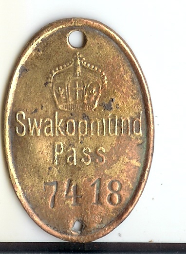Nochmals vielen Dank, Hasso, für diesen Beitrag! Die von Dir erhaltene Swakopmunder Passmarke halte ich in Ehren, auch wenn sie nur ein Loch hat...
