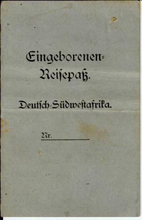 bezieht sich Deine Frage auf Eingeborenenpässe aus Papier? Falls ein Eingeborener reisen mußte, z.B. von der früheren Arbeitsstelle im Süden im Diamantengebiet nach seinem Heimatort im Norden, als Beispiel Rundu, bekam er einen "Eingeborenen-Reisepaß" ausgestellt (DV: Formular=Verlag von Karl Kühn & Söhne Berlin C. 2.). Seine Paßmarke bekam er dann vorher abgenommen, da er ja den Verwaltungsbezirk verließ. Für die Dauer eines Arbeitsverhältnisses bekam er jeweils ein "Dienstbuch" von der betreffenden Firma, auch eine Art Pass. Diese waren handgefertigt. In jedem Fall wurde immer die Nummer der Passmarke eingetragen. Verstöße gegen das Paßgesetz wurden schwer bestraft, vor allem für den (illegalen) Arbeitgeber. Man ging davon aus, daß die Eingeborenen ja im guten Glauben den Arbeitsvertrag eingingen. Für die Einhaltung der Vorschriften war in jedem Fall der Arbeitgeber verantwortlich.