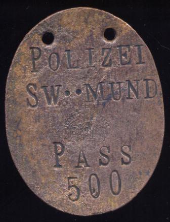 Ich stelle die Marke nochmals in gereinigtem Zustand vor. Es handelt sich um eine ganz frühe Form der Eingeborenen-Passmarken von DSWA! Ob es sich dabei um eine der bei Otto Günther in Swakopmund hergestellten Marken handelt, ist noch nicht geklärt. Vermutlich wurden diese Marken aufgrund lokaler Initiative von Beamten in Auftrag gegeben. Hierhin gehören wahrscheinlich auch die beiden, bereits vorgestellten Marken, der Ortspolizeibehörde von Otjimbingue. Es freut mich besonders, daß durch einen großzügigen Gönner diese Marke hier in SWA bleibt und, zumindestens zeitweise im Original (und ständig als Kopie) in der zukünftigen Sonderausstellung "Das Passwesen von Deutsch-Südwestafrika bis Namibia" im Swakopmunder Museum zu bewundern sein wird.