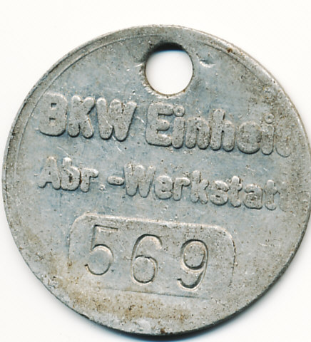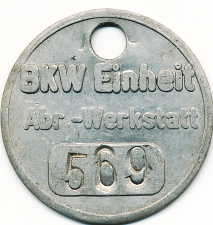 AV: BKW Einheit/Abr.-Werkstatt/im erhabenem Feld eingepunzte 569