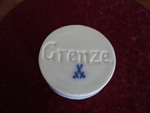 Auf der Oberseite der eingeprägte Stempel "Grenze." Darunter die blauen Kurschwerter mit Knauf, so verwendet 1860 - 1924.