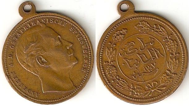 http://www.worldofcoins.eu/forum/index.php?topic=7329.0Es gibt definitiv zwei versch. Durchmesser und Inschriften der Medaille. Die arab. Inschrift hat jedoch dieselbe Bedeutung.