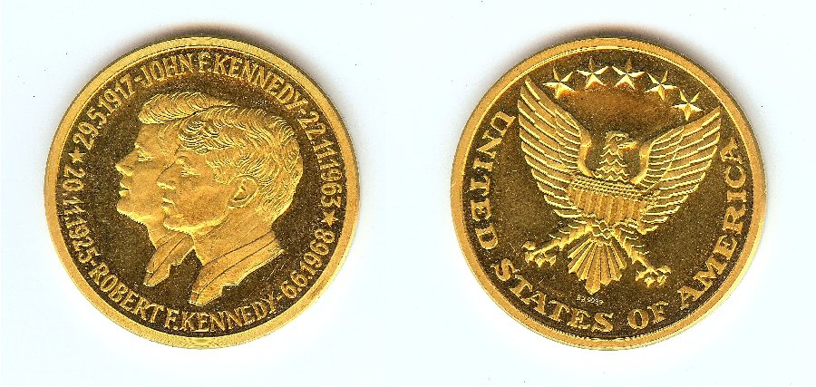 Kennedy-Münze: ca 41 g, (3,4 x 3,14 x 0,2 x 19,2) die beiden anderen je 23,5 g (2,6 x 3,14 x 0,15 x 19,2)