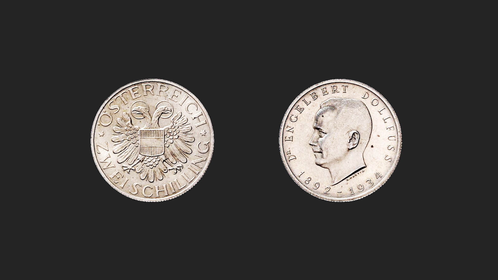 Und hier die wenig bekannte 2-Schilling-Probeprägung Dr. Engelbert Dollfuß aus dem Jahr 1934.