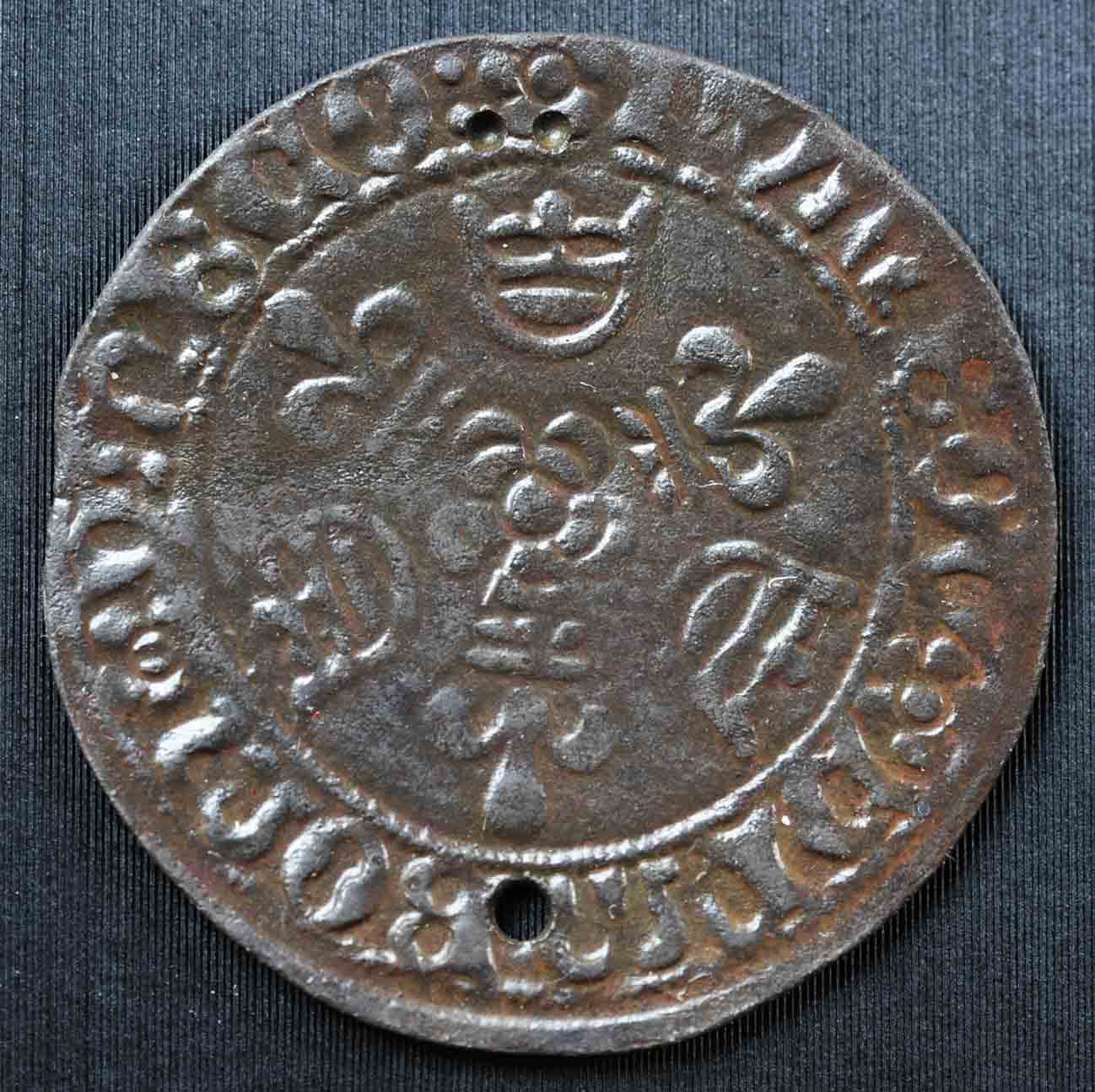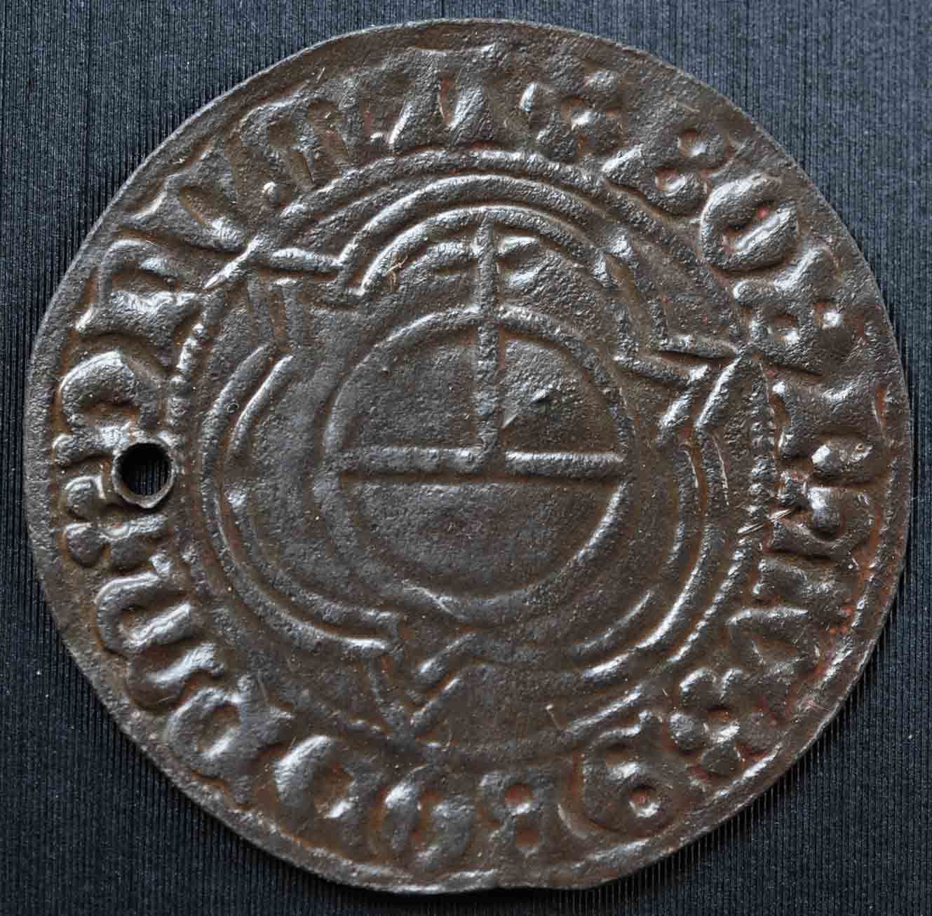 Das Stück stammt aus Funden, wo bis dato ausschließlich nur Münzen zwischen 1388 und etwa 1530 aufgetaucht sind. Dem zufolge dürfte der Rechenpfennig auch aus dieser Zeit stammen.