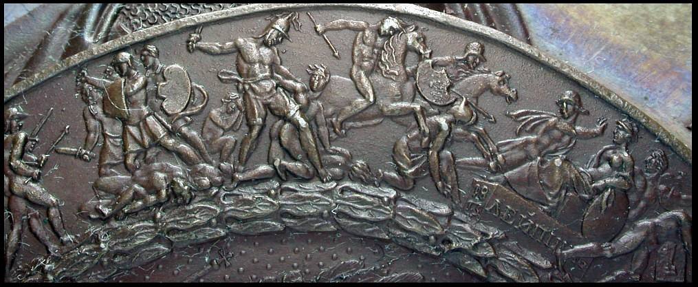 Anm. Das Bild wurde freundlicherweise von Münzen & Medaillen GmbH (DE) zur Verfügung gestellt. Die zugehörige Auktion mit ausführlicher Beschreibung zeigt ein falsches Bild.Am 16. Oktober 1813 trafen bei Leipzig die vereinigten Streitkräfte von Österreich, Russland, Preussen und Schweden in Anwesenheit ihrer Souveräne auf die Grande Armée Napoleons, die sich auf ihrem verlustreichen Rückmarsch aus Russland befand. Das dreitägige Treffen wurde vielfach und ausführlich beschrieben und ging unter der Bezeichnung