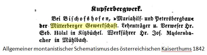 Die Entstehungsgeschichte des Kupferbergwerkes in Mühlbach am Hochkönig Herzogtum Salzburg 1827, lasse ich weg und beginne mit dem Vollbetrieb.