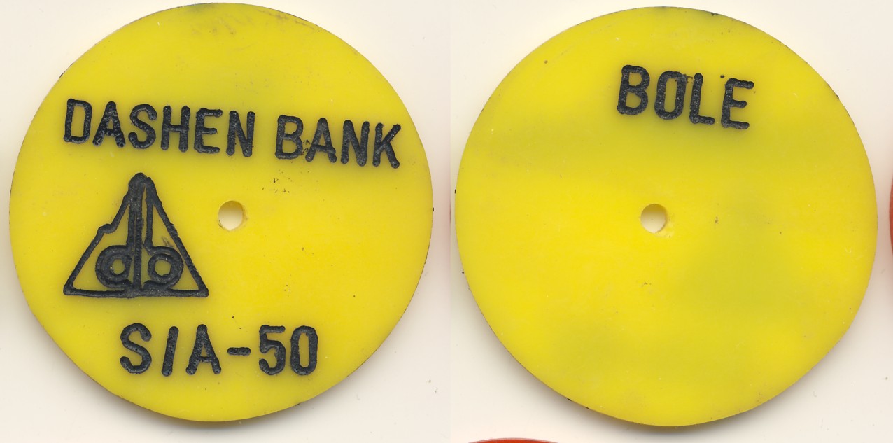 Ethiopia Token h Dashen Bank Plastik S-A-50 rund gelb Bole (Branch).jpg