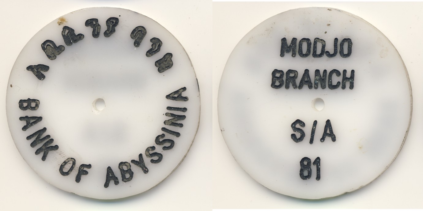 Ethiopia Token h Bank of Abyssinia S-A 81 rund weiss Modjo Branch.jpg