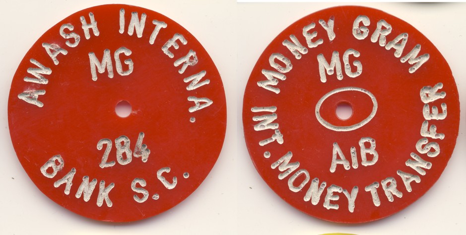 Ethiopia Token h Awash Int Bank Plastik MG 284 rund rot Money Gram.jpg