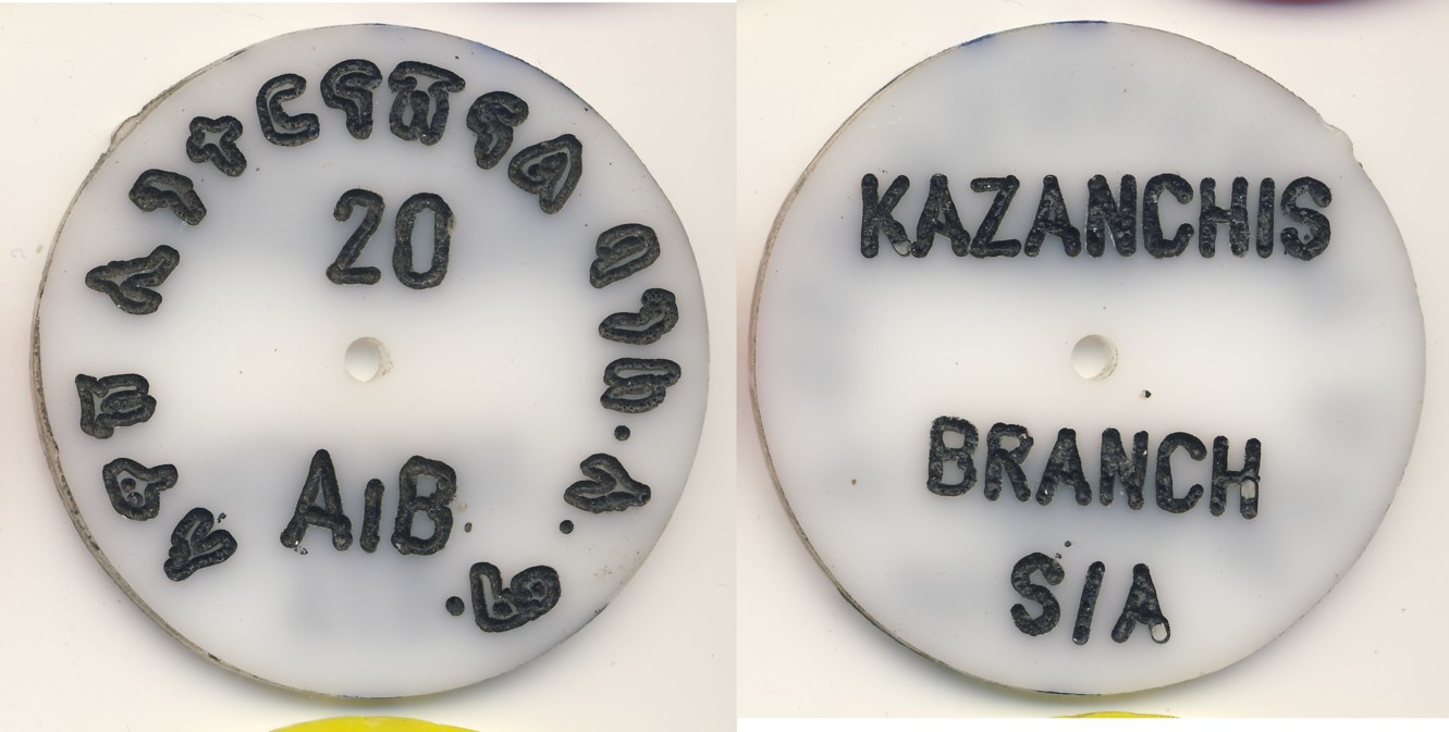 Hier sind zwei weitere Token der AIB, einer aus der Filiale in Kazanchis, einem Stadtteil von Addis Abeba, und einer für den Money-Gram-Schalter, der sich vermutlich im Hauptquartier befindet.