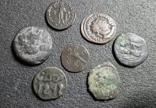 Ein wirkliches Sammelsurium. Einen Bremer Schwaren sehe ich, dann kaiserzeitliche Römer, eine attische Eule (echt?), eine aus Marokko, noch was Arabisches… Vielleicht stellst du die Münzen besser einzeln ein. Grüße, KarlAntonMartini