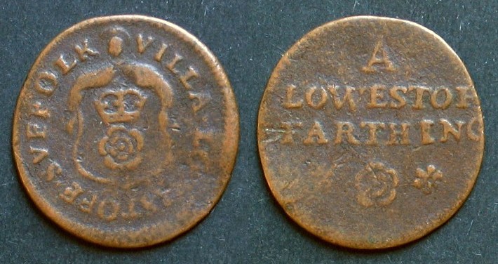 Heute hab ich im Briefkasten gefunden einen Farthing-Token aus dem 17. Jahrhundert. Diesem Gebiet habe ich mich bisher nicht gewidmet, wohl weil früher das Material so knapp war. Inzwischen sind fast zwei Generationen Metallsuchgerätebesitzer durch England gezogen und die Angebote werden reichlicher, wenngleich die Erhaltung des Materials meist zu wünschen übrig läßt. Gleichwohl sind es interessante historische Dokumente, die die Vielfalt der englischen Wirtschaft zu dieser Zeit belegen. - Zwischen 1648 und 1672 unterhielt der Tuchhändler (Draper) Nicholas Shepherd in der Kleinstadt Saxmundham (Suffolk) sein Kontor. Er gab Farthings und Halfpennies aus. Von den Farthingen sind allein neun Varianten bekannt, so daß wir eine Gesamtauflage im fünfstelligen Bereich vermuten dürfen. Die Gestaltung ist einfach und zeigt auf der Vorderseite die Initialen S.N.M. (M steht wohl für Merchant) mit der Umschrift DRAPER IN SAXMUNDHAM und auf der Rückseite das Wappen der Tuchhändler Gilde, genauer gesagt der "The Master and Wardens and Brethren of the Guild or Fraternity of the Blessed Mary the Virgin of the Mystery of Drapers of the City of London". Das Wappen zeigt in blau dreimal eine Wolke, unter der die Sonne herausspitzt und die von einer Tiara bekrönt ist. Die Wappensymbolik soll sich auf die Jungfrau Maria beziehen. Es wundert nicht, daß diese noble Gilde heute noch besteht, in der Londoner Kommunalverfassung bei der Wahl des Lord Mayor noch eine Rolle spielt und selbst die Queen Mitglied dort ist.