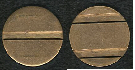Die erste wurde in Buchholtz verwendet. Sie hat einen Durchmesser von 24,98 mm, wiegt 6,06 g, scheint aus Messing zu sein und weist keine Schrift auf. Die Vorderseite hat zwei Rillen, die Rückseite eine. Die Ränder sind leicht abgeflacht, die Rillenbreite beträgt etwa 3,2 mm, der Abstand zwischen beiden Rillen etwa 10,8 mm.