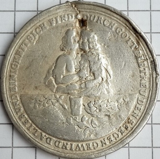 Eine Trauungsmedaille - undatiert und unsigniert. Beschrieben ist sie hier - mit leicht veränderter Orthographie.