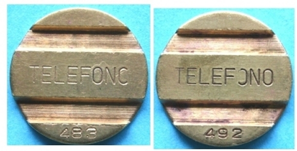 # 86 zeigt eine normale Telefonmünze aus Argentinien: