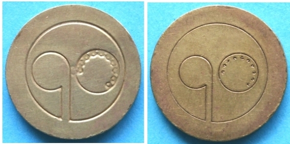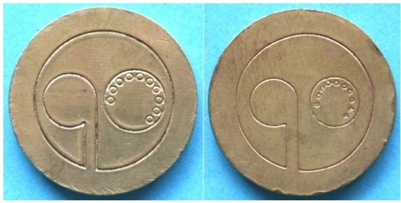 Groenendijk bezeichnet diese Token teilweise als Telegrafenmünze. Der Av. ist bei allen Stücken gleich (bis auf jeweils andere Zahlen). Die Münzen kommen sowohl in Kehr- als auch in Wendeprägung vor.