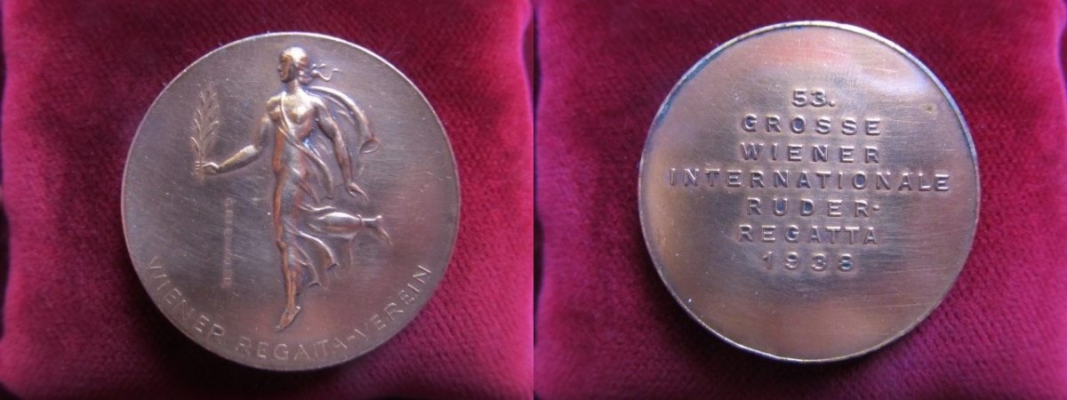 Bei deiner Medaille handelt es sich höchstwahrscheinlich um einen Entwurf bzw. um eine nicht verausgabte Preismedaille zu den Österreichischen Ruderbewerben in den 30er Jahren
