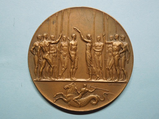 Bei deiner Medaille handelt es sich höchstwahrscheinlich um einen Entwurf bzw. um eine nicht verausgabte Preismedaille zu den Österreichischen Ruderbewerben in den 30er Jahren