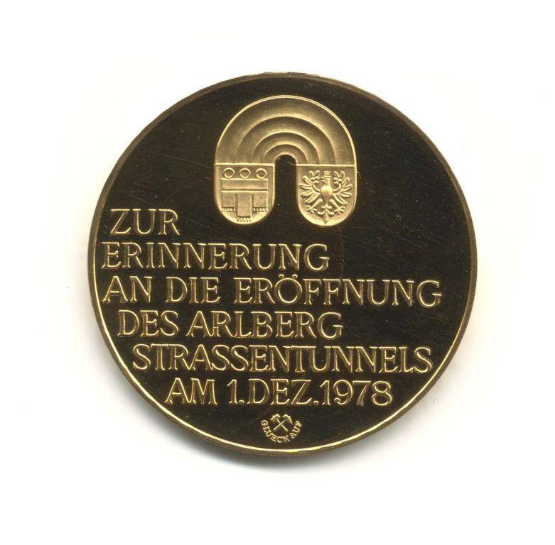 Avers: Oben die verbundenen Wappen von Vorarlberg und Tirol, sechs Zeilen mit dem Text "ZUR ERINNERUNG AN DIE ERÖFFNUNG DES ARLBERG STRASSENTUNNELS AM 1.DEZ. 1978, darunter die gekreuzten Hämmer mit "Glück Auf"