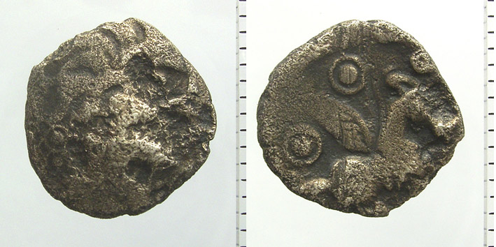 im Juli 2007 ersteigerte ich über ebay eine Silbermünze der Cantii, die zwar schon etwas von der Korossion angeknabbert war, aber damals noch ganz nett aussah (die Photos sind vom August 2007, jetzt kleingerechnet):