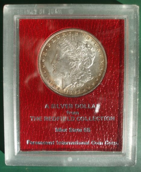 A gigantic marketing effort followed, generating tremendous interest within the American coin hobby. The Redfield coins are still frequently seen today (although the grades they were assigned by their promoters often evoke laughter). Illustrated below is a “Redfield” dollar dated 1897, which, coincidentally, was LaVere Redfield’s birth-year.