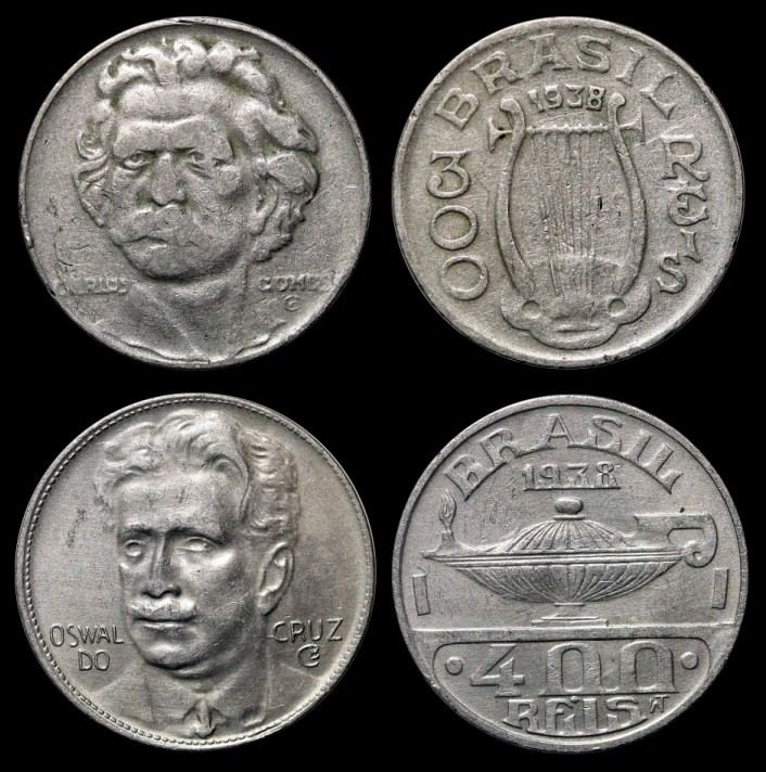 Oben: 300 Reis (Cu-Ni) 1936-1938.