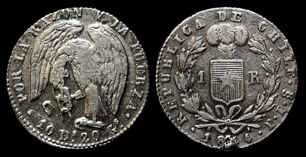 Mit dem Jahr 1818 endete das spanische Generalkapitanat Chile, 1819 wurde die Republik Chile ausgerufen. Bereits 1817 war der chilenische Peso im Wert von 8 Reales eingeführt worden. Diese Unterteilung blieb bis1851 bestehen und dann auf das Dezimalsystem umgestellt. Zeitgleich wurde der Peso dem französischen 5 Francs Stück auf dem Silberstandard von 22,5 g Feinsilber angepaßt.