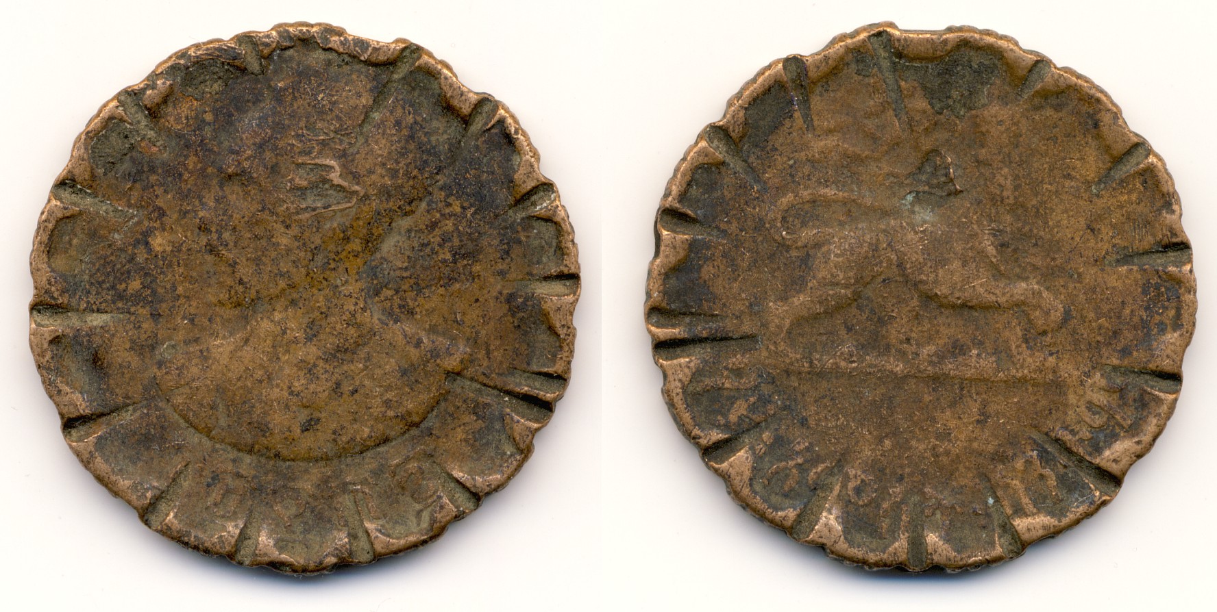 Nachdem man nun die 421.500 ausgegeben runden Münzen einzog, hatte man ein Problem. Was tun damit? Man versuchte im Lande selbst diese Münzen nachträglich mit dem Wellenrand zu versehen, was mit den "bordeigenen" Mitteln nicht ganz leicht war. Vielleicht wurden diese Münzen in der Münzstätte von Addis Abeba umgearbeitet, vielleicht auch von privater Seite - in Äthiopien fehlt es wie auch in arabischen Ländern nie an fähigen Silber- und Goldschmieden. Bei der Vielfalt der Varianten dürfte beides der Fall gewesen sein.