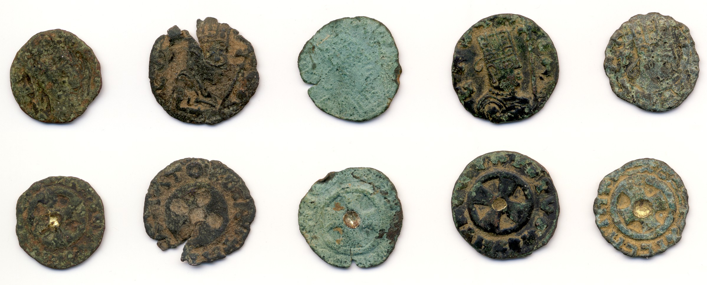 erstmal herzlichen Dank für Deine Einschätzung, die meine latente Ahnung in Bezug auf einen neuzeitlichen Guß bestätigt. Ich halte das Teil aber nicht für eine bewußte Fälschung von MH#76. Dafür ist es einfach viel zu dick und zu schwer gegenüber den regulären Münzen. Das Rv kommt, wie gesagt, einigermaßen hin, aber das Av hat keine Ähnlichkeit mit dieser axumitischen Kupfer-Münze. Davon habe ich auch das ein oder andere Stück - insgesamt 11 an der Zahl - mitgebracht, die sicherlich echt sein dürften. In zwei Bildern habe ich die mal unten angehängt. Ein paar davon könnten auch MH#112 sein, aber bei dem schlechten Zustand einiger der Münzen ist eine Bestimmung bei den geringen Unterschieden beider Typen schwierig. Die Dinger haben ja wahrscheinlich 1500 Jahre im äthiopischen Acker gelegen. Nummero drei, die grünspanige, war übrigens total verkrustet und ich habe sie im Labor für ein paar Minuten in ein Ultraschallbad mit destilliertem Wasser gelegt. Die Kruste und die braune Erdpatina gingen dabei flöten, zurück blieb der Belag von Pseudo-Malachit. Es war halt ein Experiment.