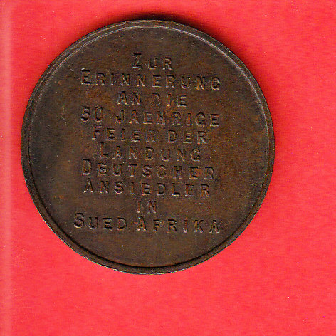 Hier eine Medaille aus Kaffraria "50 Jahre Landung Deutscher Ansiedler in Süd Afrika. 1858-1908"