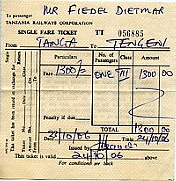 Heutzutage gibt es noch zweimal pro Woche einen Mixed-Train, gebildet aus einer Menge Güterwagen und einem einzigen Personenwagen 3. Klasse zwischen Tanga und dem 84 km entfernten Korogwe. Vor einigen Jahren hatte ich das Vergnügen, mit diesem Zug fahren zu können. Auf dem weiteren Streckenabschnitt bis Moshi besteht derzeit nur Güterverkehr.