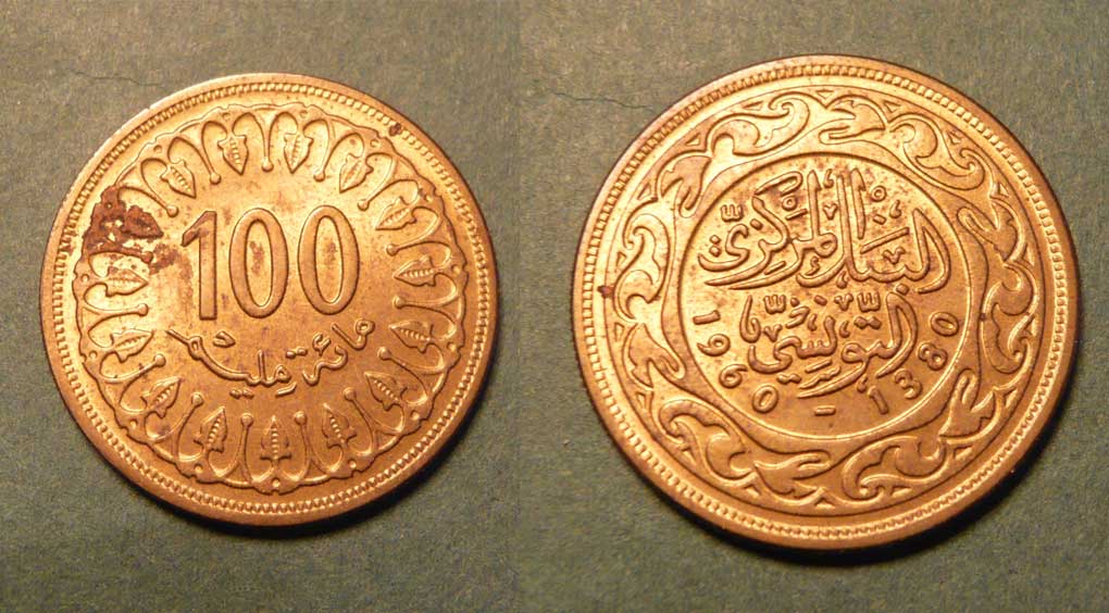 Tunesien, 100 Milliemes, KM#309, Schön#207.1