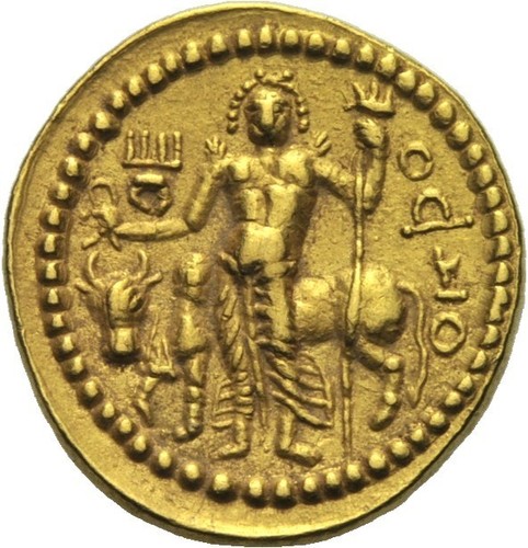 Niederlande - Neujahrsmedaille 1744. Av. Chronos (das vergangene Jahr) läuft n. r. mit Sense und Stundenglas, am Arm hängt der Ourobouros (die Schlange, die sich in den Schwanz beißt, als Symbol für den ewigen Kreislauf). Sein Fuß steht auf der Trennlinie des Sternkreises, dessen Ausschnitt die Sternbilder Steinbock und Wassermann – das letzte Sternbild des alten Jahres und das erste des neuen Jahres – zeigt. Im Hintergrund strahlende Sonne. Umschrift: GODT DOE BY'T NIEWE IAARGETY STEEDS NIEWE ZEGENINGEN BY (Gott gebe zum Neuen Jahr stets neue Segnungen.)