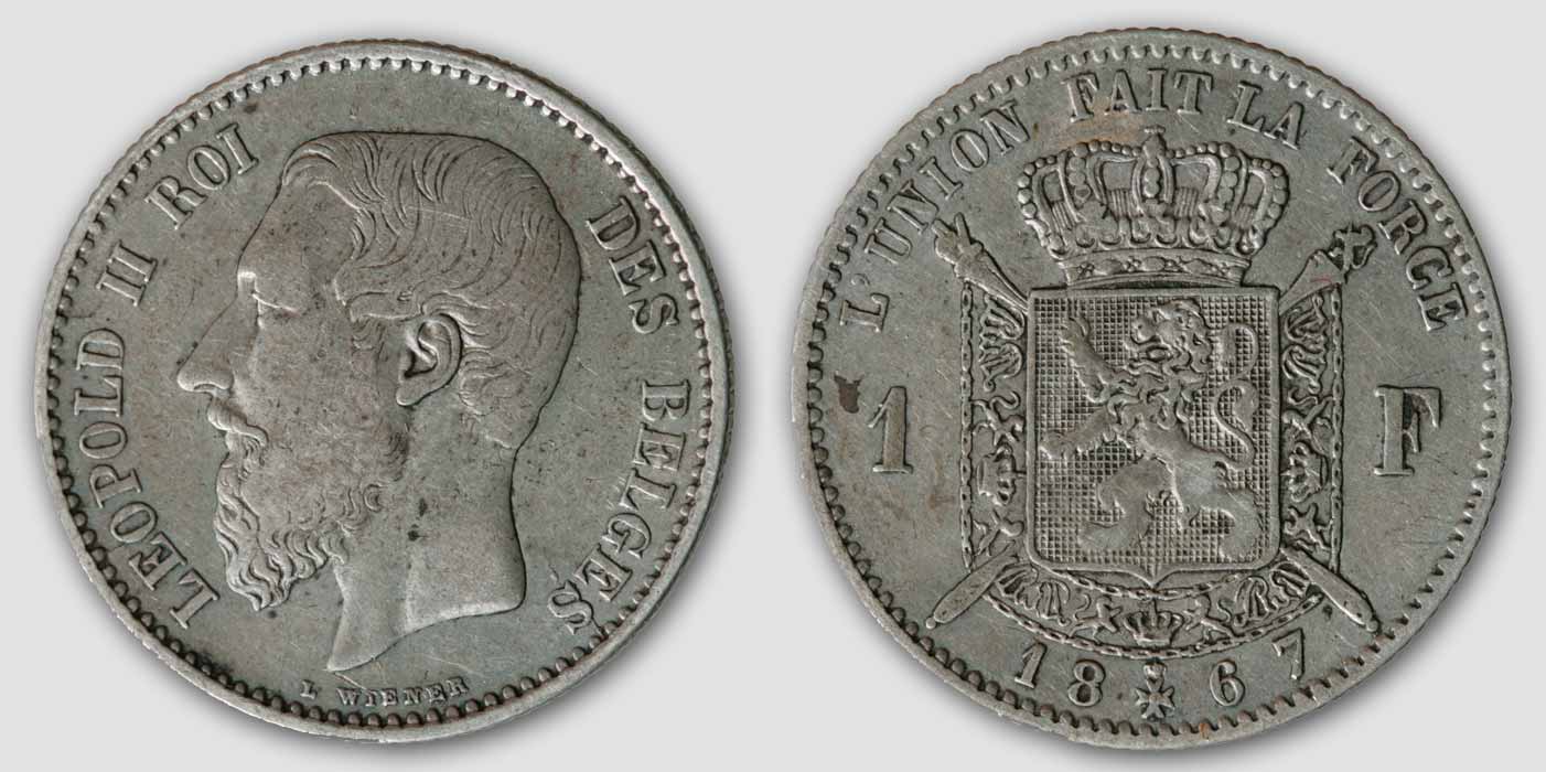 a) französisch: LEOPOLD II ROI DES BELGES (S#25, KM#28.1, 1867)