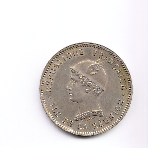 Ein 1 Franc Essai von der "Ile de la Reunion" (ehem. französische Kolonie). Lecompte 45 (Matt)