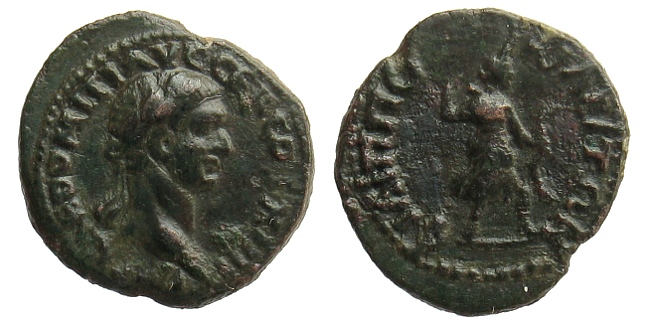 Ich mag Provinzbronzen, ich mag KLEINE Provinzbronzen und vor allem mag ich Bronzen mit so gutem Stil wie bei dieser hier. Interessant ist außerdem, dass bei Münzen dieser Stadt bis zu Caracalla die Vorderseite in lateinischer Sprache und Schrift, die Rückseite dagegen in griechischer Sprache verfaßt ist.