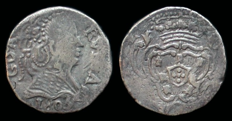 Armillarsphäre zeigen sie senkrecht geteilt oben zwei Wappen. Darunter in der Spitze deuten Wellenlinien ihre geographische Lage in Übersee an. Bei allen Wappen zeigt der (heraldisch) rechte Schild fünf kleine blaue Schilde ins Kreuz gestellt, belegt mit je fünf goldenen Scheiben (Bezants). Sie stehen für das Mutterland. Der (heraldisch) linke Schild blieb dem Wappen der Kolonie vorbehalten. Bei den oben vorgestellten Münzen sind dies: