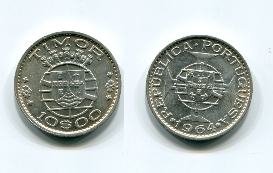 provisorisches Wappen. - Dieses zeigte eine Armillarsphäre auf einem Sockel (Farben unbekannt) und ist auf den Münzausgaben der Jahre 1935/1936 abgebildet. Vielleicht hat ja einer unserer "Afrikaner" ein solches Stück in seiner Sammlung und kann es hier vorstellen? Dann hätten wir nämlich die jüngsten Wappen der portugiesischen Kolonien auf dem afrikanischen Kontinent komplett.