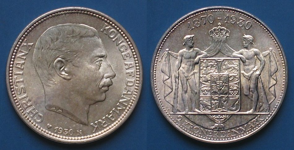 2 Kroner, 1937, geprägt zum 25. Jahrestag der Thronbesteigung von Christian X, S#44, KM#830