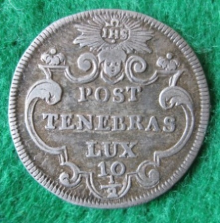 http://www.sixbid.com/nav.php?p=viewlot&sid=395&lot=99310 1/2 Sols 1714. Wappen. Rv. 3 Zeilen Schrift in verzierter Kartusche. Demole 391. HMZ 2-344a. DT 1011.
