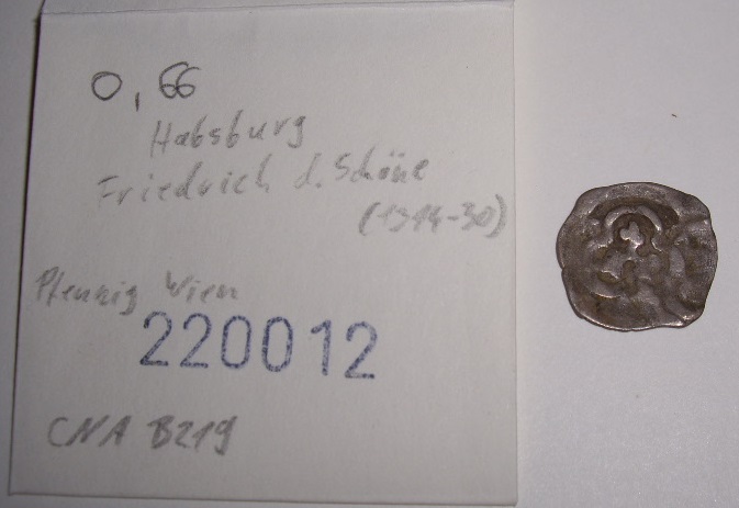 soweit man das auf den Bildern erkennen kann, stimmen Deine CNA-Nummern. Beim B219 sollte die Rückseite ein Adler im Vierpass mit eingesetzten Ecken sein (was immer das bedeutet). Leider sind die Rückseiten der Wiener Pfennige aus dieser Periode generell sehr schlecht. Vermutlich verwendete man die Stempel mehrmals bei verschiedenen Prägungen, sie haben sich daher klarerweise sehr abgenützt. In diesem Fall wurde laut CNA der gleiche RS-Stempel auch für die CNA-Nummern B209, B211, B214 und B220 verwendet.