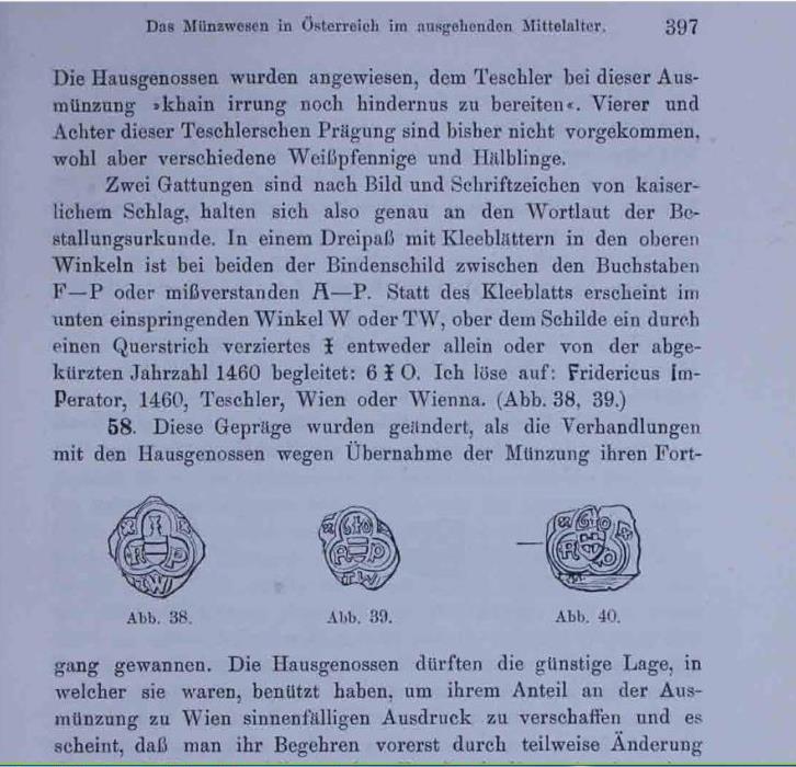 ob es sich hier um einen Pfennig oder Hälbling handelt, kann man nur über das Gewicht feststellen. Luschin beschreibt im Beitrag "Münzwesen ob und unter der Enns im ausgehenden Mittelalter" die Prägung dieser Münzen bereits durch die Hausgenossen unter Teschler. Ich füge einen Screenshot der entsprechenden Seite bei. Den ganzen Artikel habe ich als PDF. Er ista aber auch im Internet abrufbar.