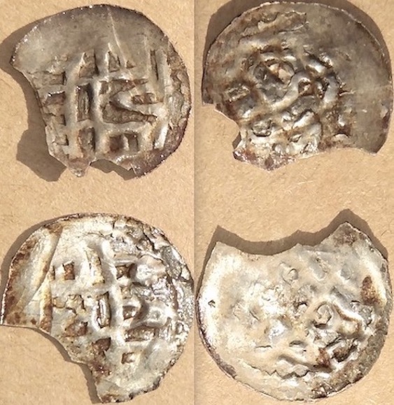 Es handelt sich dabei um Regensburger Prägungen aus der Zeit Kaiser Heinrichs IV. (1084–1105). Diese Typen sind vor allem durch den Fund Obing bekannt geworden – leider oftmals sehr schelcht ausgeprägt, dezentriert etc..