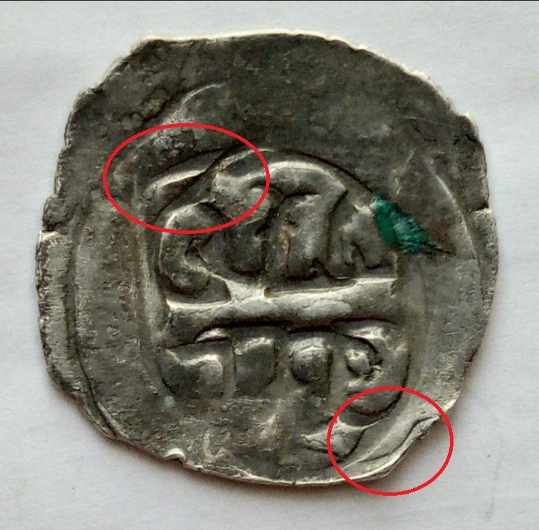 Möglicherweise stammt dein Exemplar nicht aus Österreich, sondern aus Bayern? Hätte in der Mitte ein Kreuz gesehen das beiderseits von ??? flankiert wird. Denke, dass der Balken in der Mitte senkrecht stehen sollte und habe für andere, die versuchen eine Lösung zu finden, den Pfennig jeweils um eine Vierteldrehung nach unten oder oben gedreht.